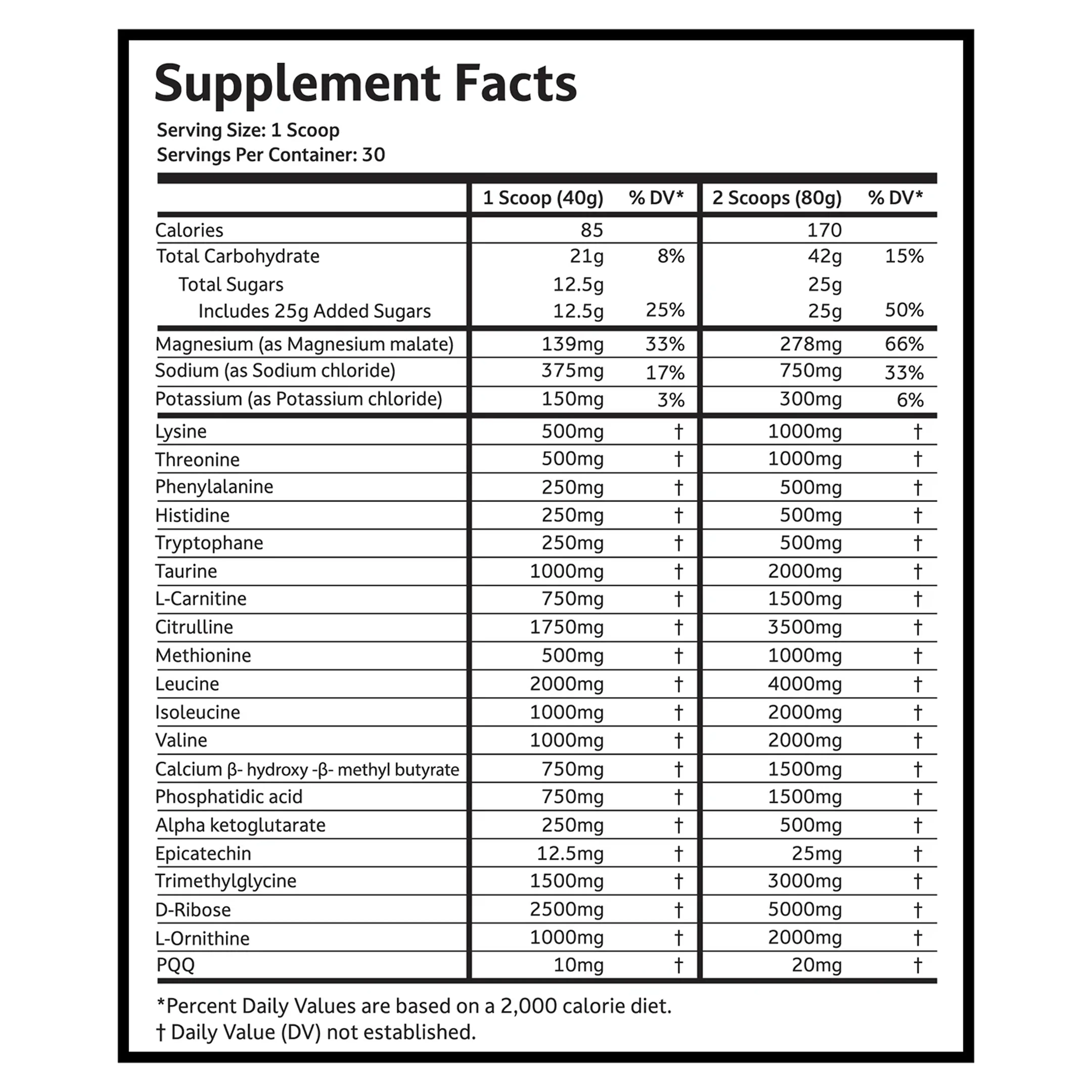 Floods your system with fast-digesting carbs, essential amino acids, and electrolytes exactly when your body is most receptive. You're not just preventing fatigue, you're fueling performance in real time, set by set.