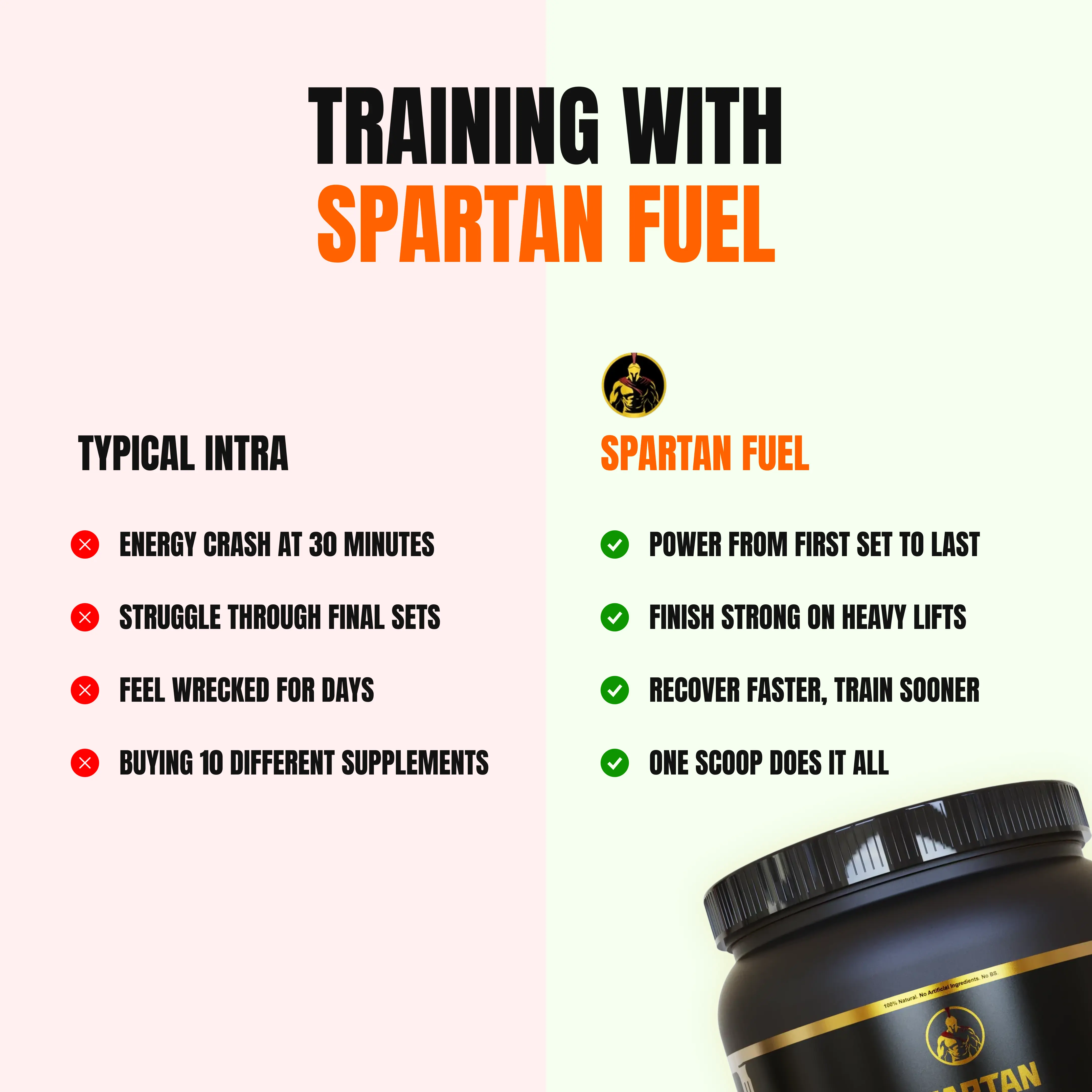 Pre-workouts spike energy before you train. Spartan Fuel fuels you during, when your muscles are actively working and most receptive to nutrients. Use them together for maximum performance.